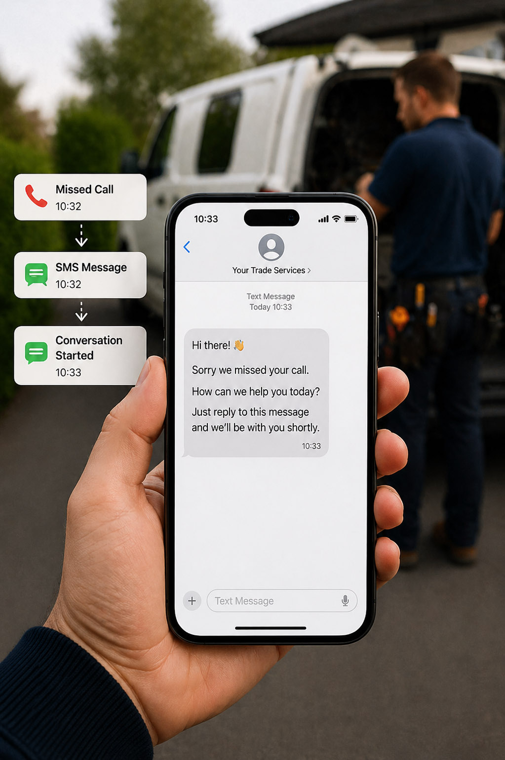 Out on a job and can't answer? Your system sends a text message and starts the conversation for you.